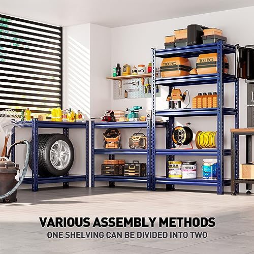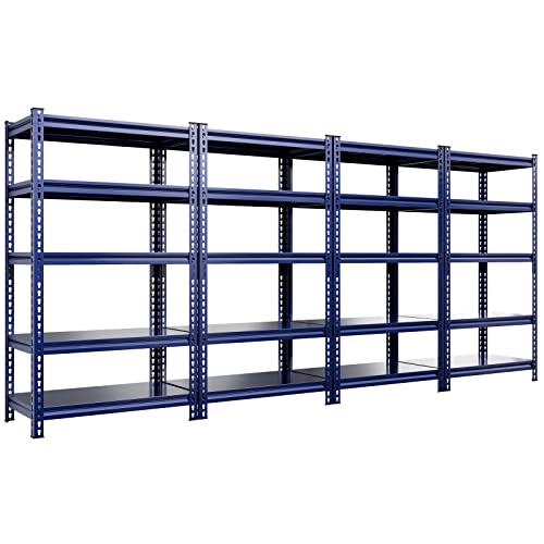 REIBII 72″ Garage Shelving Heavy Duty Garage Storage Shelves Load 1700LBS Adjustable Heavy Duty Shelving 5 Tier Metal Shelving for Storage Industrial Shelving 31.9″ W x 17.1″ D x 72″ H Blue 4 Pack