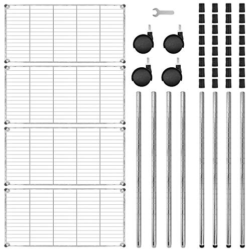 Specification: Simple Deluxe 4-Tier Heavy Duty Storage Shelving Unit, Heught Adjustable, Chrome,35.43″ D x 17.72″W x 65.35″ H, 1 Pack