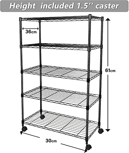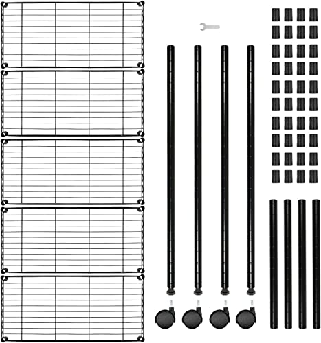 Specification: Simple Deluxe Heavy Duty 5-Shelf Shelving Unit, 29.92″ D x 13.98″ W x 62.99″ H, 5 Tier, Black