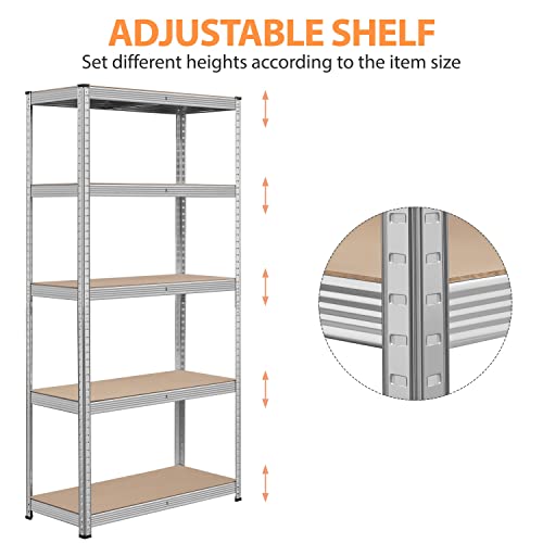 Topeakmart 5-Tier Utility Shelves, Metal Storage Shelves Unit Adjustable Garage Storage Racks Heavy Duty Shed Shelving- Silver, 35.5 x 16 x 71 Inch