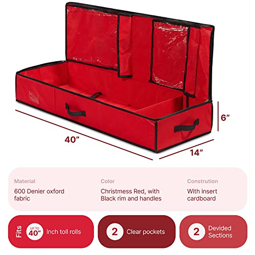 Nakior Christmas Wrapping Paper Storage Container – Xmas Gift Wrap Organizer With Pockets– Stores up to 24 Rolls – Under Bed Storage Bin For All Christmas Accessories – Made from 600 Oxford Fabric