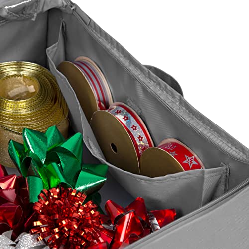 STAY ORGANIZED WITH AN ALL-IN-ONE HOLIDAY WRAPPING SUPPLY CONTAINER: If you’ve been looking for a place to store and keep all of your holiday supplies in one place after the holidays or someplace to store birthday and special occasion wrapping supplies then your search is over! Grey snowflake design for Christmas cheer, our product has two deep pockets and plenty of space for your ribbons, tools, and tape which means that you can store your holiday wrapping supplies in one container!