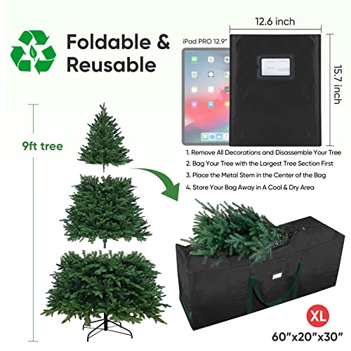 🌲[PERFECTLY SIZED & VERSATILE] Christmas tree storage built with craftsmanship. Generously sized for fluffy tree that can easily fit up to 9ft disassembled Artificial Christmas Tree. The Xmas tree bag is small enough to put away, big enough to hold and protect Christmas tree for the coming year after year.