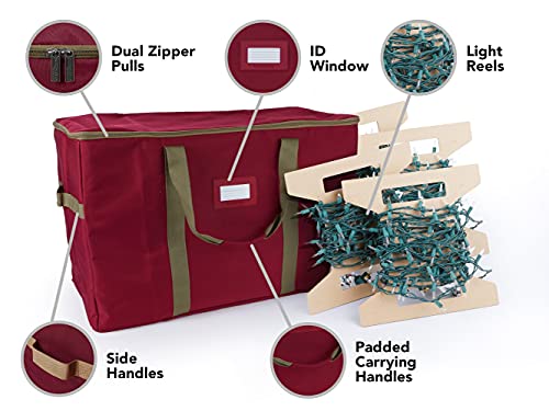 Specification: Covermates Keepsakes Christmas Light Storage Bag – Carrying Handles, ID Window – Holiday Storage-Red Snowflake
