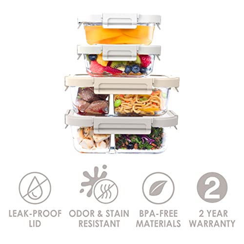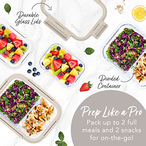 Bentgo® Glass Leak-Proof Meal Prep Set – 8-Piece Lunch & Snack 1 & 2-Compartment Glass Food Containers with Glass Lids – Reusable, BPA-Free, Microwave, Freezer, Oven & Dishwasher Safe (White Stone)