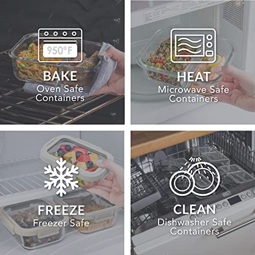 DURABLE GLASS LIDS: We crafted the base and the lid in transparent glass so you can easily see what’s inside at a glance. Made of high-quality, borosilicate glass with a tempered glass lid, these durable, yet surprisingly lightweight, glass meal prep containers are better for the environment as they help cut back on single-use plastics and you can reuse them again and again.