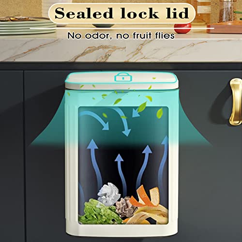 Specification: Kitchen Compost Bin Hanging Trash Can with Lid, 2.1 Gallon Stainless Steel Trash Can Compost Bin, Wall-Mount Indoor Kitchen Trash Bin for Cabinet, Under Sink, Bathroom (2.1 Gallon, 8L Ivory White)