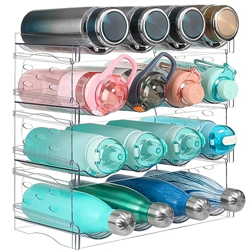 Specification: Water Bottle Organizer for Cabinet Fridge,Stackable Tumbler Organizer,Kitchen Pantry Organizers and Storage,Plastic Travel Mug Cup Holder Wine Rack Organization,Water Bottle Rack Holder (4pcs)