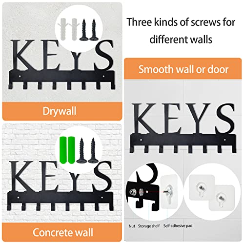 Worry-free Installation: We have prepared three kinds of wall screws for you to install the keys holder. Punch-free screw stickers for smooth walls or doors. White anchors for drywall. Green anchors for concrete.