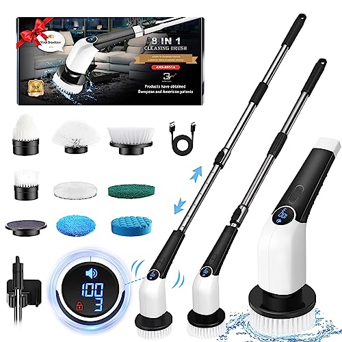 Specification: Electric Spin Scrubber, LOSUY Shower Scrubber with LED Screen, Power Shower Scrubber for Bathroom, Kitchen, Floor, Tile, Tub with 12-45 in Adjustable Extension Arm and 8 Replaceable Drill Brush Heads