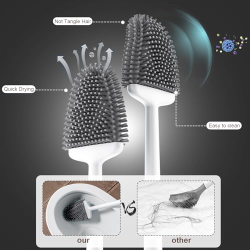 No Hair Tangling Troubles: Larger bristles make it not easy to entangle hair and other dirty foreign objects. Getting rid of hair by simply rinsing the brush head. Save your time fixing cleaning problem and hair-tangling troubles. Instead of using plastic bristles, Sellemer Toilet Brush uses silicone bristles, which can protect toilet bowl from being scratched also.