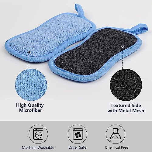PREMIUM QUALITY: One side is made of high-quality microfiber for average cleaning tasks, while the other side features textured metal mesh to improve friction when scrubbing hard-to-clean dirt or residue.