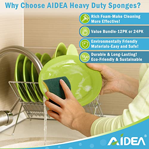 AIDEA Heavy Duty Scrub Sponge-50 Count, Cleaning Sponge, Kitchen Dish Sponge, Effortless Cleaning Eco Scrub Pads for Dishes,Pots,Pans All at Once