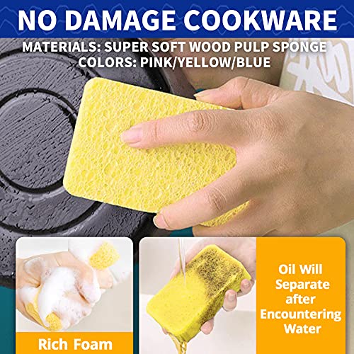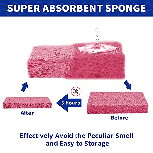【Flexible & Long-lasting】It is not easy to deform or break after kneading frequently. After finishing the work, rinse it with water to clean it up, not smelly. The cleaning sponge can be reused and durable. Please note: These cellulose sponges are wet in their initial state, this is because it contains water retention to protect the sponge against harden and dry cracking. Just wash it with water for the first time.