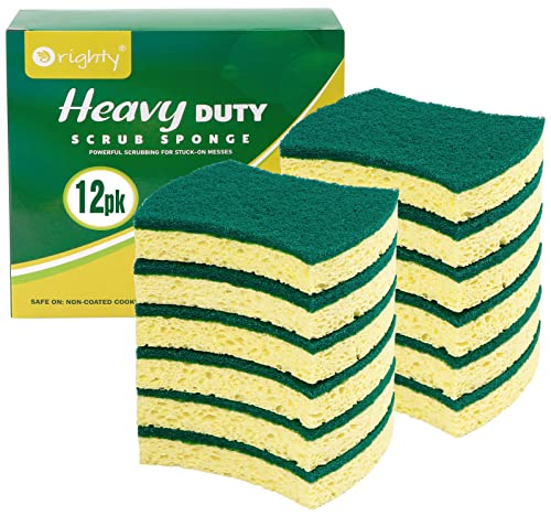 ORIGHTY Heavy Duty Cellulose Scrub Sponges Kitchen, Powerful Scrubbing & Cleaning, Suitable for Washing Dishes and Kitchen Cleaning, Absorbent & Rich Foam, 12 Count