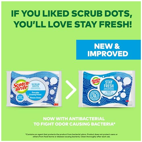 Specification: Scotch-Brite Scrub Dots Non-Scratch Scrub Sponges, Sponges for Cleaning Kitchen, Bathroom, and Household, Non-Scratch Sponges Safe for Non-Stick Cookware, 6 Scrubbing Sponges