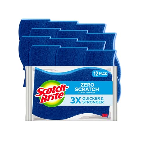 Specification: Scotch-Brite Zero Scratch Non-Scratch Scrub Sponges, Sponges for Cleaning Kitchen, Bathroom, and Household, non-scratch Sponges Safe for Non-Stick Cookware, 12 Scrubbing Sponges