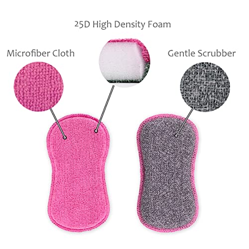 UPSTAR Dish Sponges, Kitchen Non-Scratch Scrub Sponges, Microfiber Cleaning Sponges for Sink, Basin and Multi-Pupose, Pack of 6