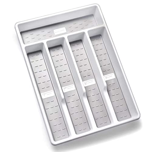 Specification: Joequality Silverware Organizer with Icons,Plastic Cutlery silverware Tray for Drawer,Utensil Flatware Tableware Organizer for Kitchen with Non-slip TPR,Fits Standard Drawer,5-Compartment,Grey