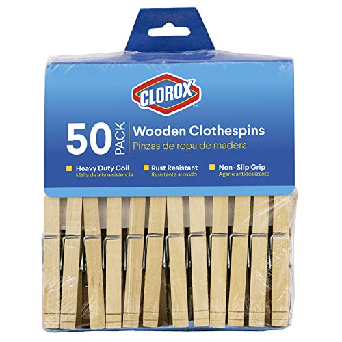 Specification: Clorox Wood Clothespins with Spring – Value Pack of 50 Clips, Rust Resistant with Heavy-Duty Coil for Line Drying Laundry, Chip Bags, and Crafts