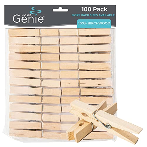 Home Genie Large Wooden Clothespins, 2.9″, 100 Pack Natural Birchwood, Rust and Moisture Resistant Clothes Peg, Durable Wood Clothing Pins, Strong Grip, Laundry Clothesline, Bag Clips, Crafts, Photos