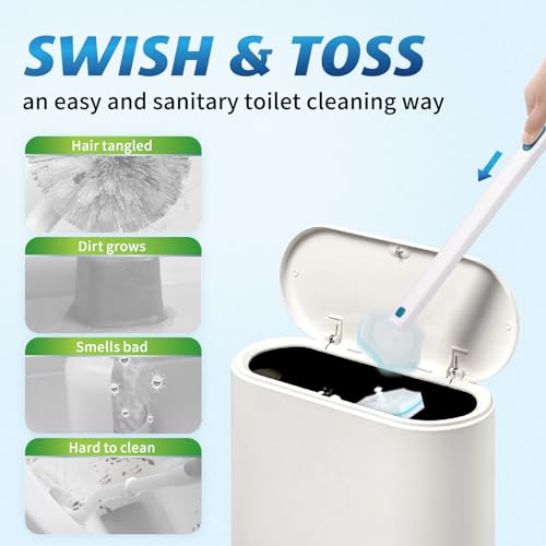 CONVENIENT USE: Ksend disposable bathroom cleaner brush allows you to easily scrub your toilet without worrying about cleaning the dirty brush bristles or storing it in a smelly bucket. After cleaning the toilet, simply dispose of the used brush head in the trash can. Ksend disposable toilet bowl brush brings a convenient and sanitary solution for hassle-free toilet cleaning.