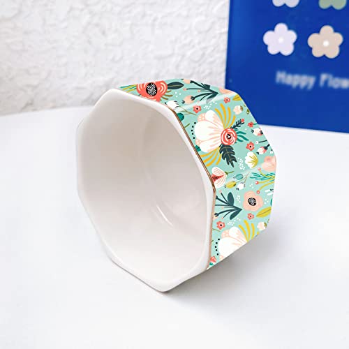 LEAZUL Ceramic Paper Clip Holder Gold Line Paper Clip Dispenser Organizer for Desk Cute Floral Pattern Office Binder Clip Holder Bobby Pin and Hair Clip Holder Gift for Office Mint Flowers