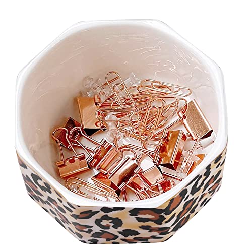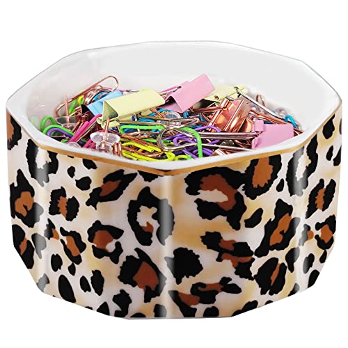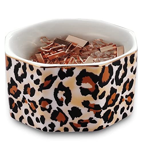 Specification: LEAZUL Ceramic Paper Clip Holder Gold Line Paper Clip Dispenser Organizer for Desk Cute Leopard Office Binder Clip Holder Bobby Pin and Hair Clip Holder Gift for Office Brown