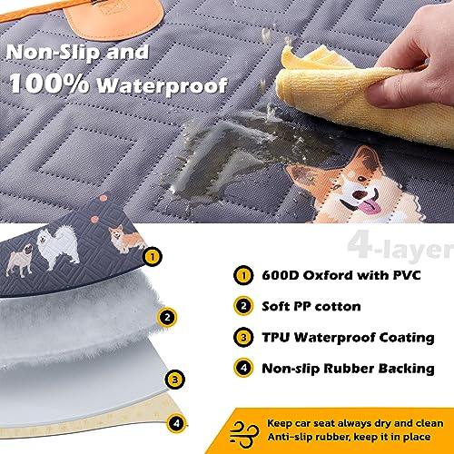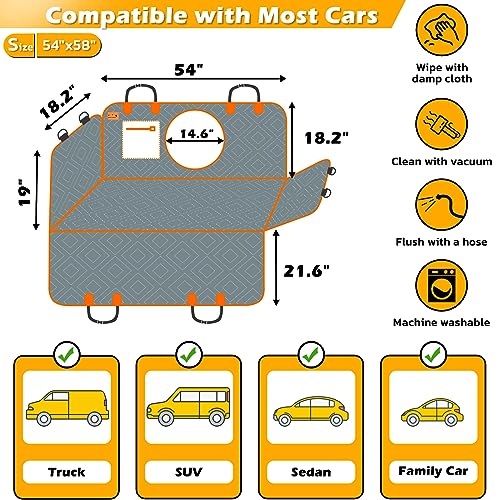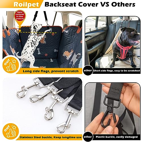 Roilpet Dog Car Seat Cover for Back Seat, 100% Waterproof Dog Hammock with Mesh Window, Non Slip, Scratch Proof Pet Backseat Covers for Cars Trucks and SUVs,(54″ W x 56″ L, Dog Pattern Prints)