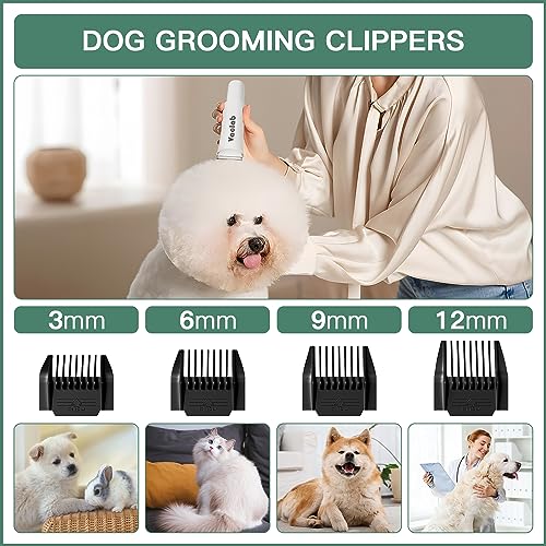 🐶👍【4 Comfortable Guard Combs】➖The adjustable electric clipper with 4 guidance combs provided (3mm/6mm/9mm/12mm) is applicable for shaving pet hair of different lengths. Upgrade Professional 9MS of hardness Ceramic Clipper Blade is safe enough for you to style your pet’s hair at home. Detachable blades and guide combs are easy to change and clean.