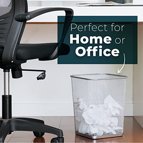 Greenco Mesh Square Wastebasket, 6 Gallon, 2pk (Silver) – Lightweight & Sturdy Office Trash Cans for Near Desk – Garbage Can for Bedroom, Kitchen, Dorm – Garbage Bin – Trash Can Office & Home Supplies