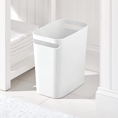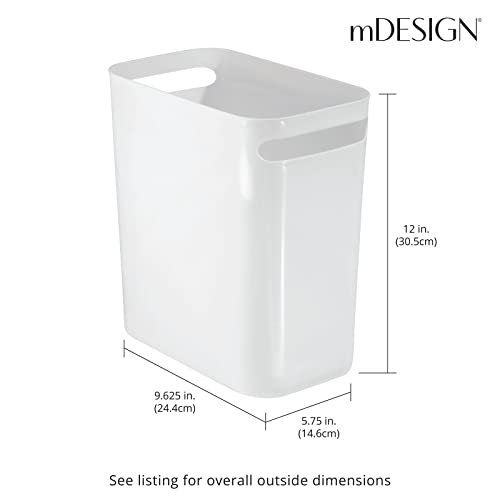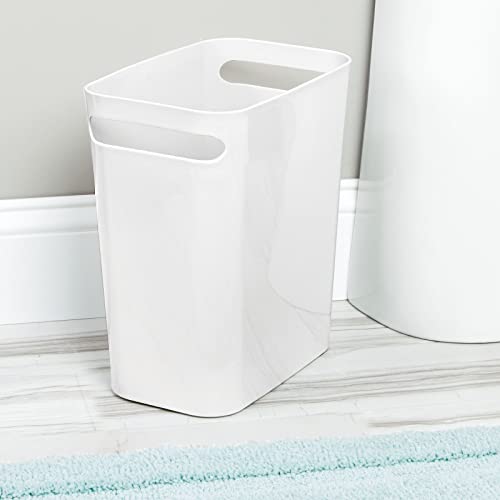mDesign Plastic Slim Large 2.5 Gallon Trash Can Wastebasket, Classic Garbage Container Recycle Bin for Bathroom, Bedroom, Kitchen, Home Office, Outdoor Waste, Recycling – Aura Collection – White
