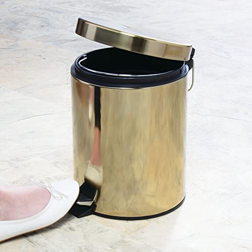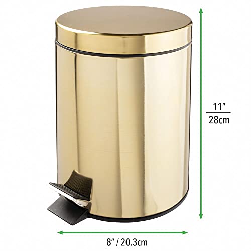 mDesign Small Modern 1.3 Gallon Round Metal Lidded Step Trash Can, Compact Garbage Bin with Removable Liner Bucket and Handle for Bathroom, Kitchen, Craft Room, Office, Garage – Soft Brass, 5 liter