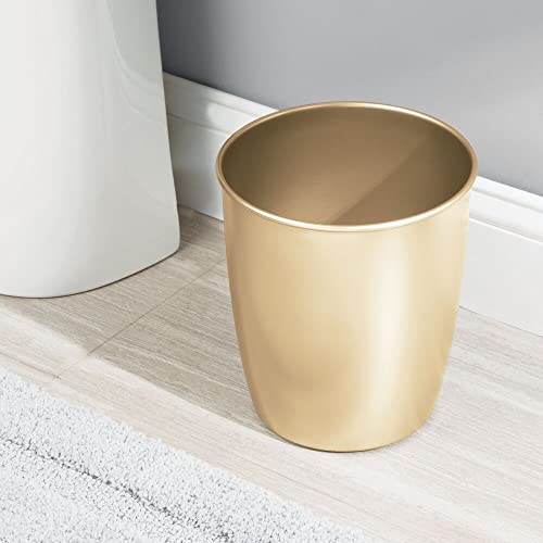 mDesign Small Steel Round Trash Can Bucket – 1.5 Gallon Wastebasket, Garbage Container Bin for Bathroom, Powder Room, Bedroom, Kitchen, Home Office – Hamill Collection – Soft Brass