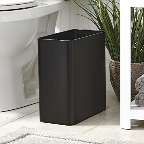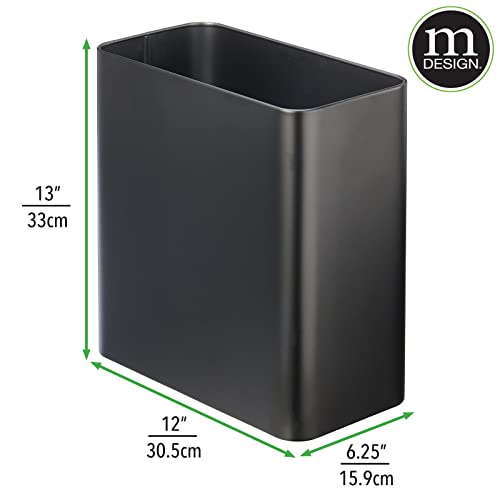 mDesign Stainless Steel Slim Rectangular Modern Metal 2.6 Gallon/10 Liter Trash Can Wastebasket, Garbage Container Bin for Bathroom, Bedroom, Kitchen, Home Office; Holds Waste, Recycling – Black