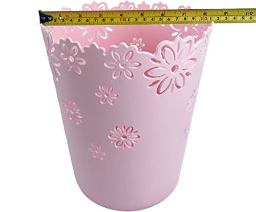 Specification: Nazr Mini Wastebasket, Hollow Flower Shape Plastic Lidless Wastepaper Baskets Trash Can (L-Pink)