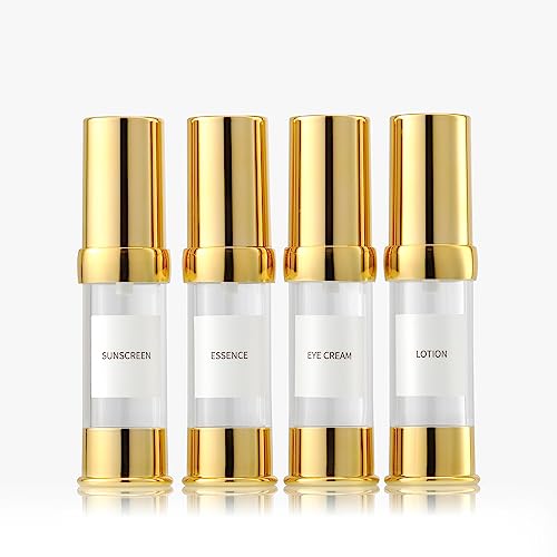 Specification: Golden Airless Pump Bottle Travel Set with Box Refillable Empty Cosmetic Pump Bottle Vacuum Pump Bottles for Liquids Such as Hand Soap,Toner,Foundation,Hair Oil,Lotion and Cream(0.5oz/15ml,4 Pack)…