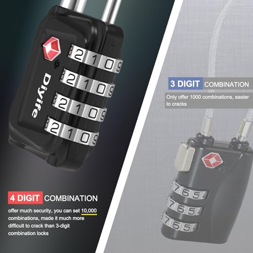 【Upgraded & 4 Digit Passwords】 4-digit passwords offer 10,000 different password combinations. Diyife TSA luggage locks are three times as secure as other locks with 3-digit passwords. You can set any number as a password combination, and nobody knows the password except you. No key required, so you do not have to worry about the risk of losing the key.