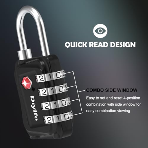 Specification: Diyife TSA Luggage Locks, [Upgrade Version][2 Pack] TSA Approved Luggage Lock, 4 Digit Combination Padlocks with Alloy Body, Code Lock for Travel Suitcase Luggage Bag Backpack Gym School Office Locker