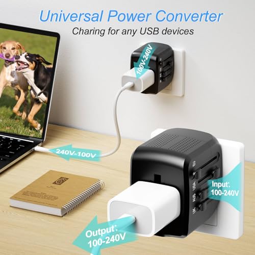 International Travel Adapter Voltage Converter to Step Down 220V to 110V for Hair straighteners, laptops, Cell Phones, Power converters from USA to UK, Europe, Australia Over 200 Countries (Black)
