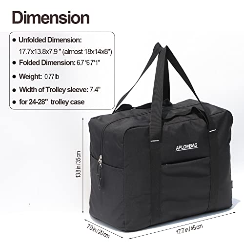 [Lightweight and packable] Weighing only a mere 0.77lb, making it the ideal companion for travelers seeking to avoid cumbersome baggage fees and tired arms. With our state-of-the-art foldable technology, the Aplombag Travel Bag pops open effortlessly, enabling you to pack and unpack in a snap.
