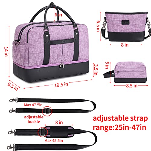 Specification: BOVIP Weekender Bag with Shoe Compartment Overnight Bag Canvas Travel Duffel Bag Carry On Tote for Women & Men 3Pcs Set Purple Black