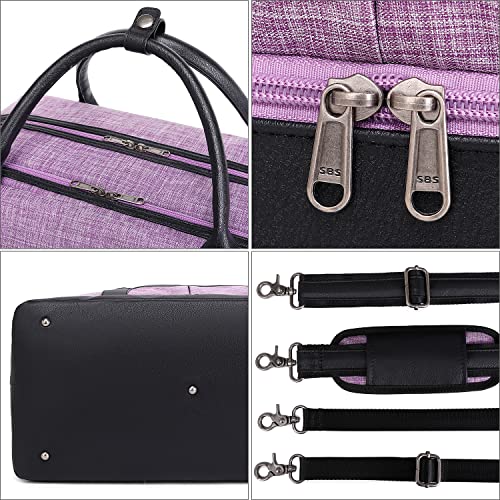 BOVIP Weekender Bag with Shoe Compartment Overnight Bag Canvas Travel Duffel Bag Carry On Tote for Women & Men 3Pcs Set Purple Black