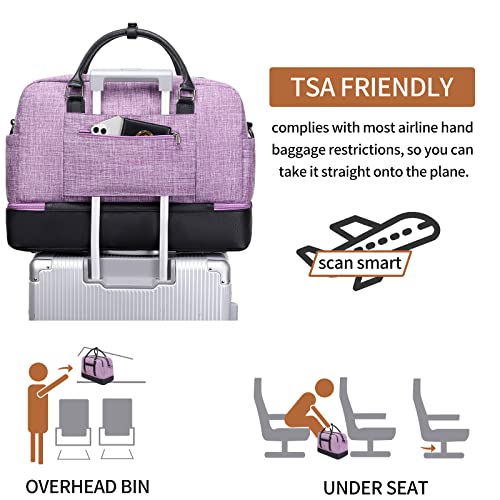 【INDEPENDENT SHOE COMPARTMENT】 The weekender bag with shoe compartment can hold up to three pairs shoes,dirty clothes, wash bags or other things you want to store separately, separate them to keep other things in womens weekend bag clean and tidy. The thicker bottom can better carry weight.
