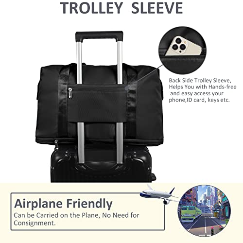 Expandable Travel Duffle Bag, Large Weekender Overnight Bags for Women Men 20.5 Inch Waterproof Carry on Shoulder Tote Bags for Hospital Maternity Mommy Gym with Toiletry Bag Black