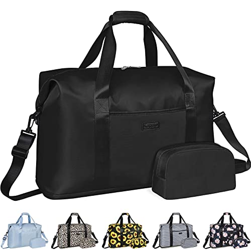 Specification: Expandable Travel Duffle Bag, Large Weekender Overnight Bags for Women Men 20.5 Inch Waterproof Carry on Shoulder Tote Bags for Hospital Maternity Mommy Gym with Toiletry Bag Black
