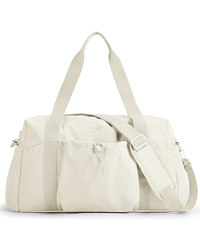 Weekender Bag for Women, BAGSMART Travel Duffle Bag with Shoe Bag for Travel, 26L Airport Carry On Overnight Bag Gym Tote Bag for Sports, Travel Essentials(Beige)