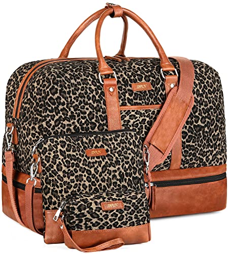 Weekender Bags for Women, Large Overnight Bag Canvas Travel Duffel Bag Carry On Tote with Shoe Compartment 21″ for Women & Men 3Pcs Set