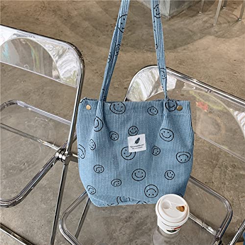 JARKJARD Corduroy Tote Bag Aesthetic Cute Tote Bags Large School Shoulder Bags for Teen Girls Trendy Stuff(Blue)