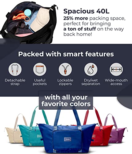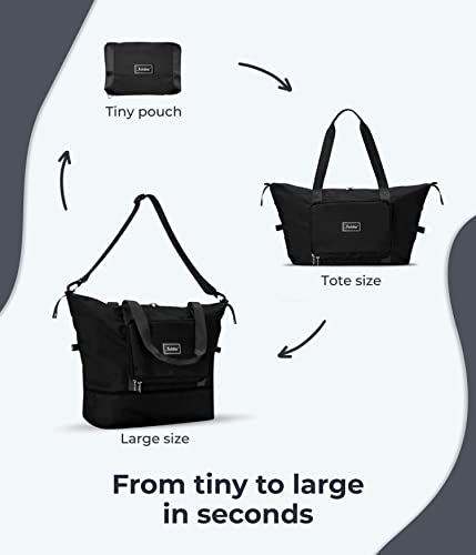 The Foldie® Foldable Travel Bag for Women [LARGE CAPACITY] – Packable & Expandable Tote Bag with Zipper for Travel